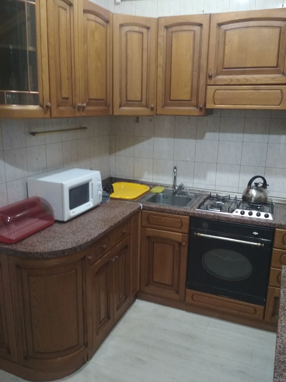 Полностью оборудована кухня ( Плита, СВЧ, Чайник, холодильник, посуда)